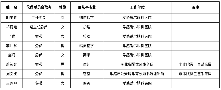 伦理委员会办公室电话:0712-2856677 伦理委员会成员信息表: